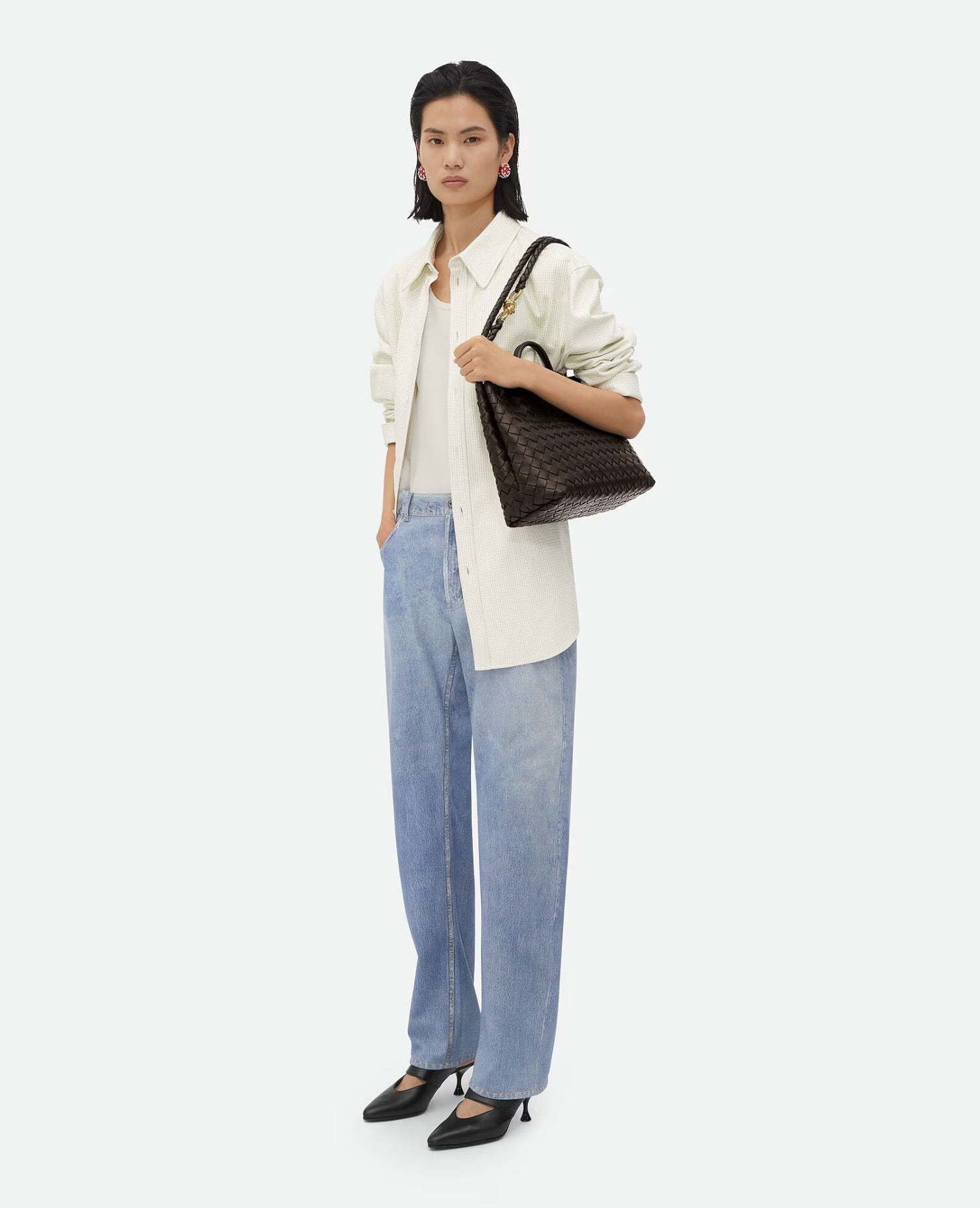 Top handle bag in supple Intrecciato leather with signature knot detail and sliding