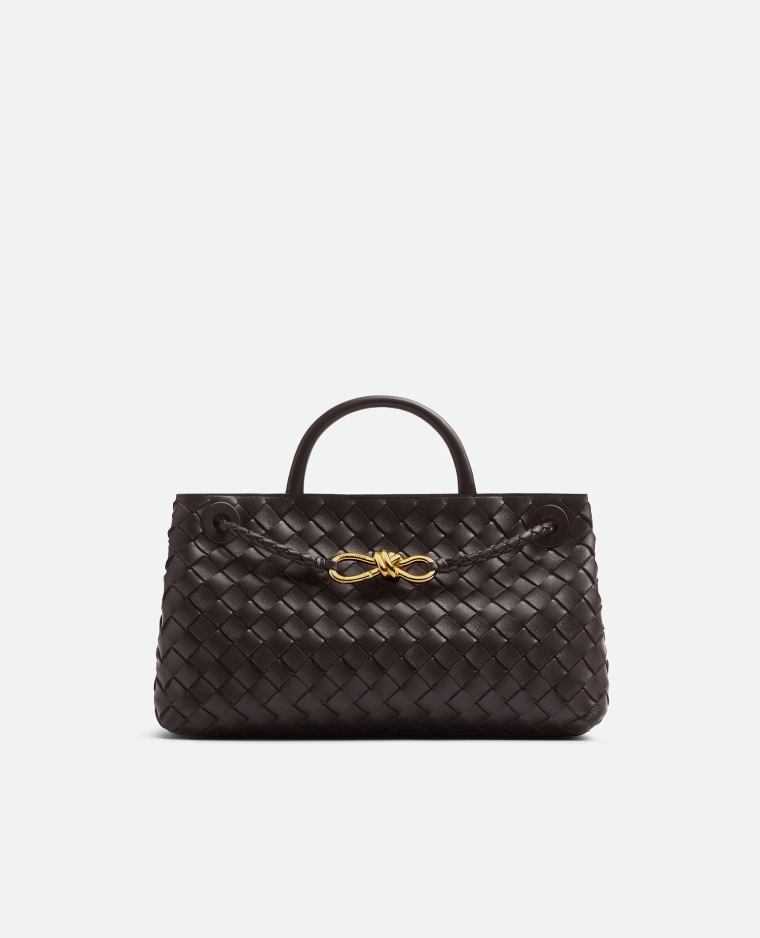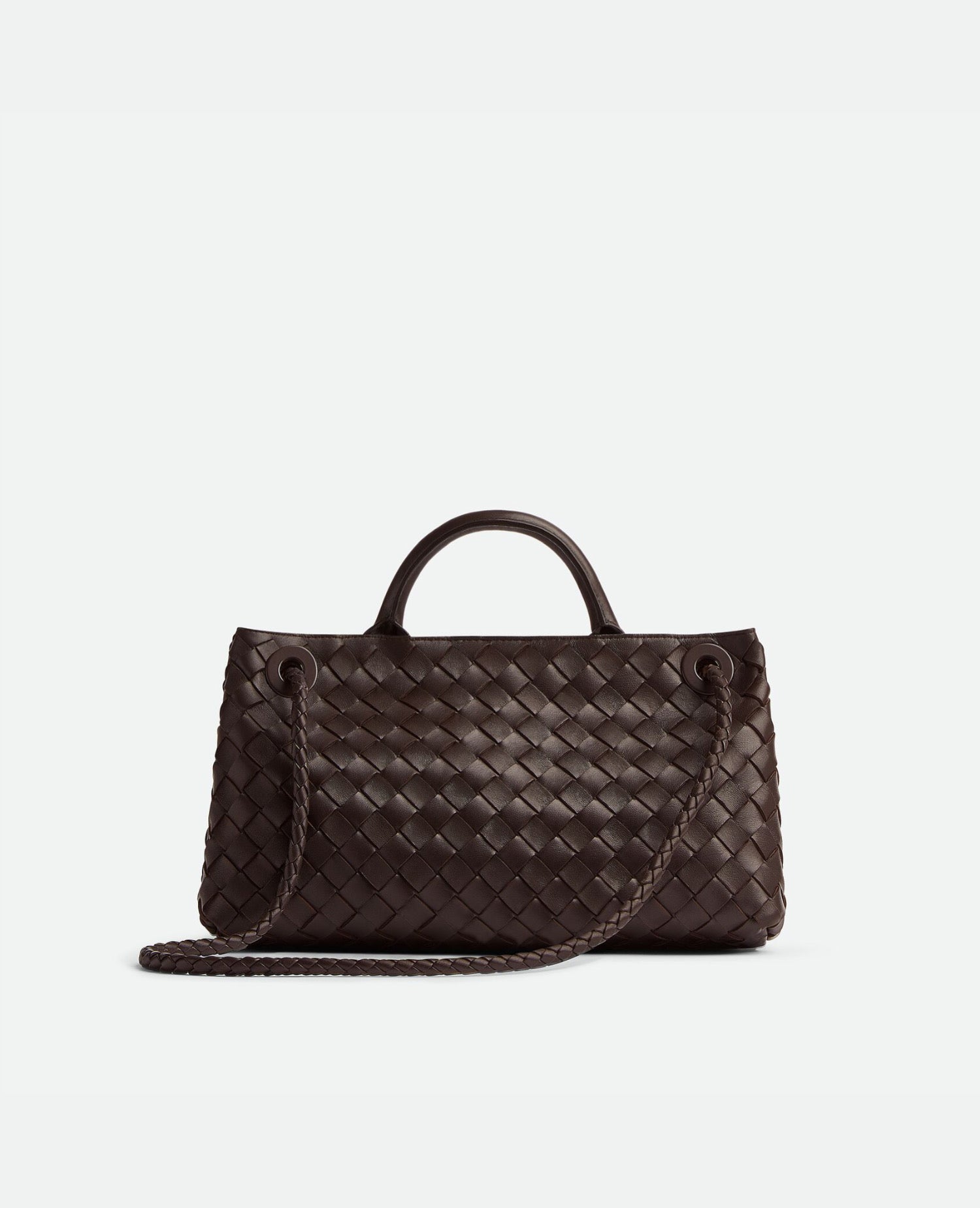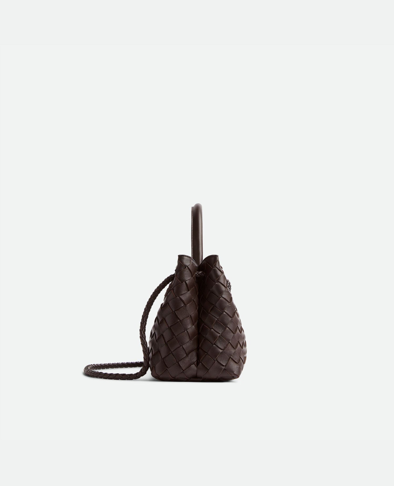 Top handle bag with elongated silhouette in supple Intrecciato leather with signature