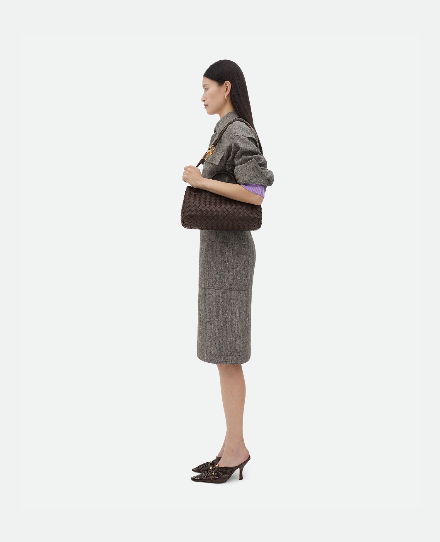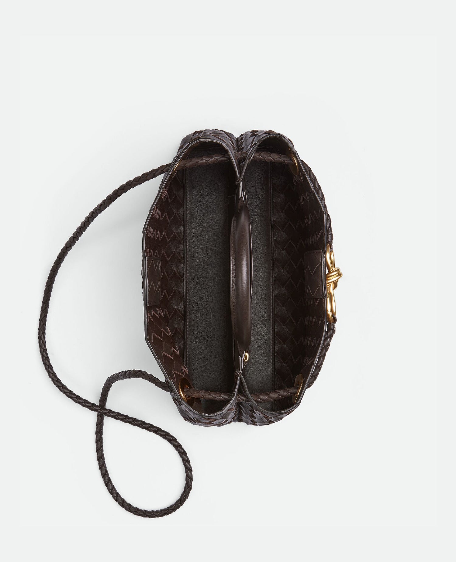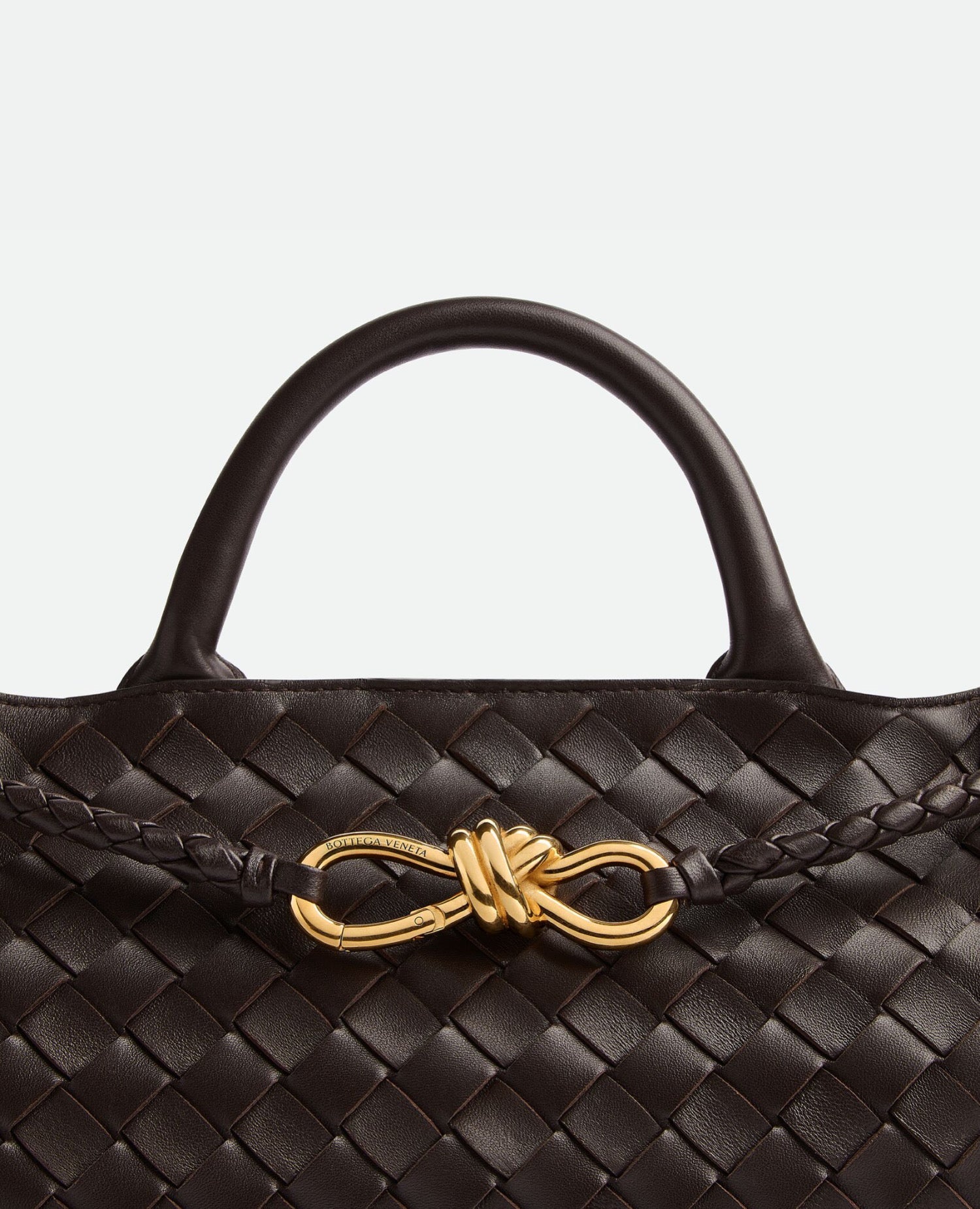 Top handle bag with elongated silhouette in supple Intrecciato leather with signature