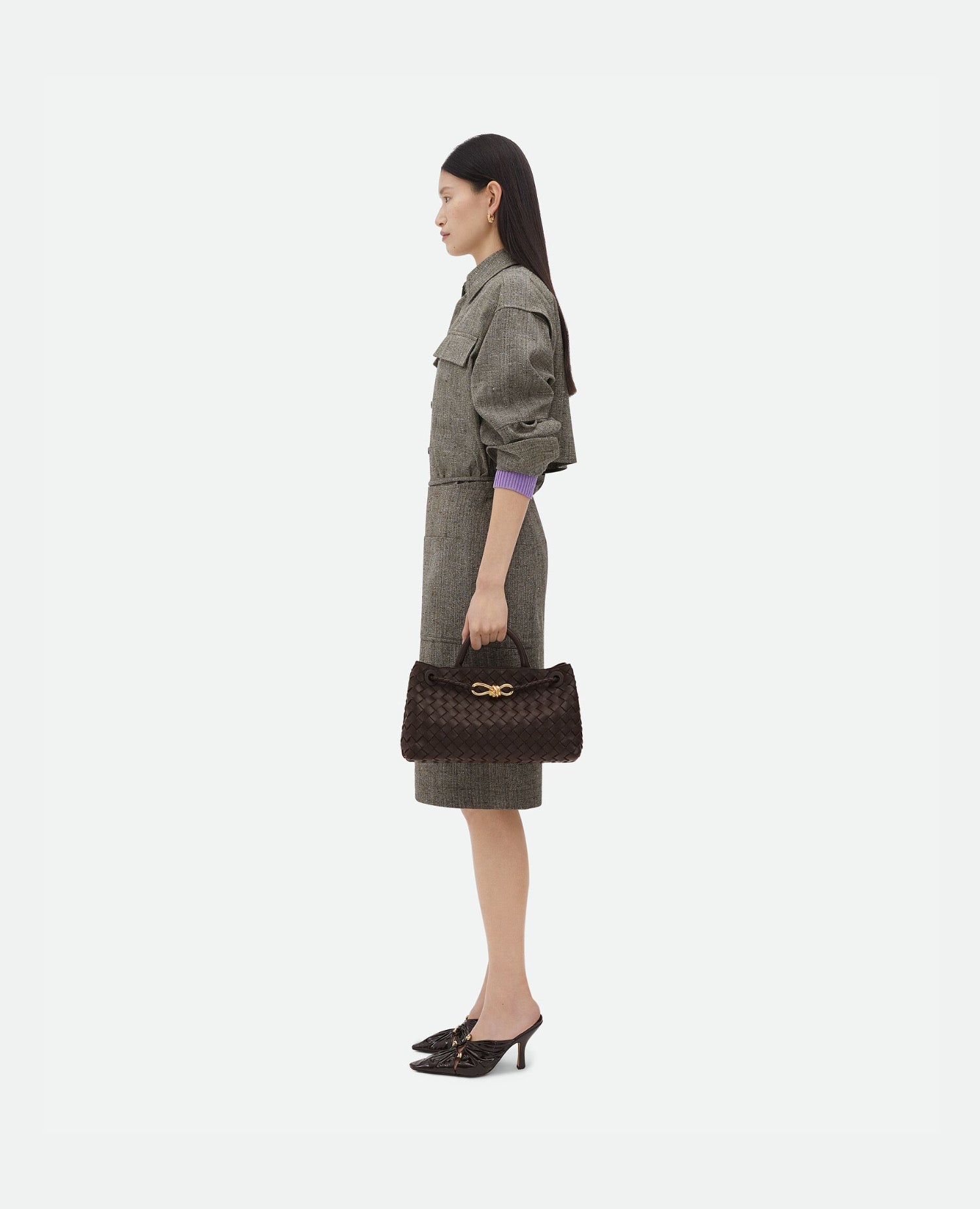 nappa leather featuring a sliding cross-body strap and signature knot detail.