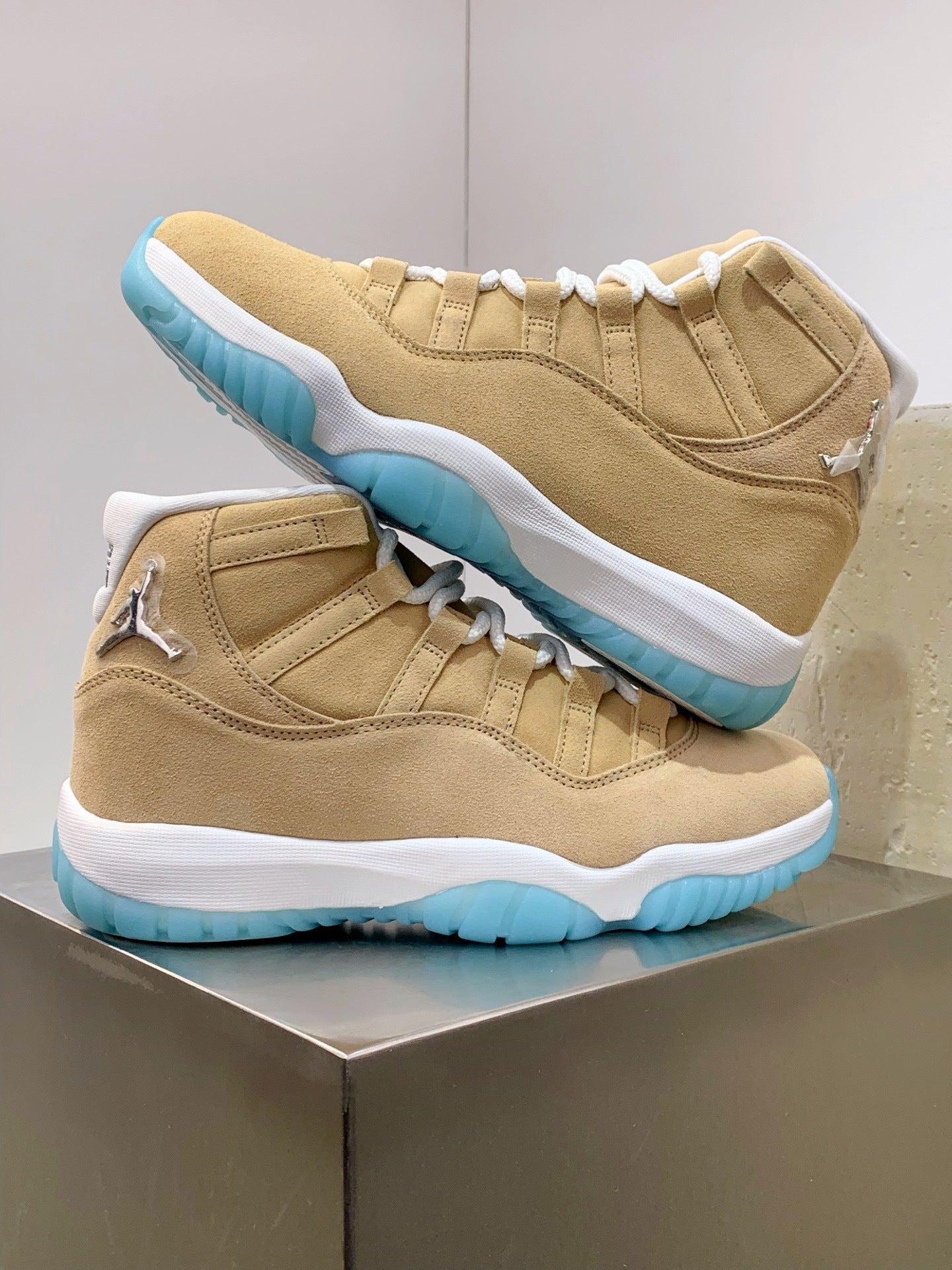 Signature Branding: Detailed with a striking Chrome Jumpman logo on the heel, adding a modern, high-shine metallic contrast to the earthy suede tones.