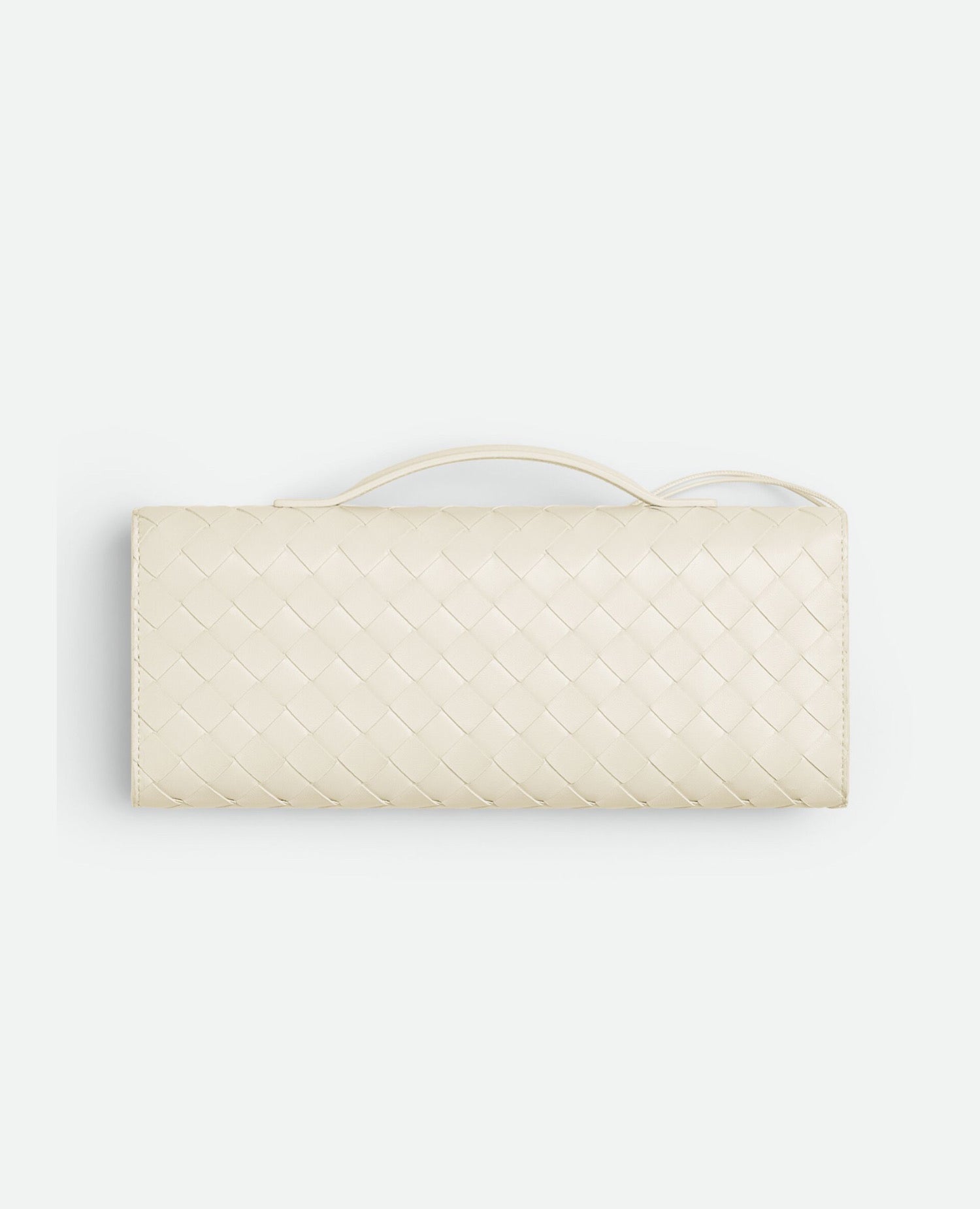 Top handle clutch in supple Intrecciato leather with signature knot closure.